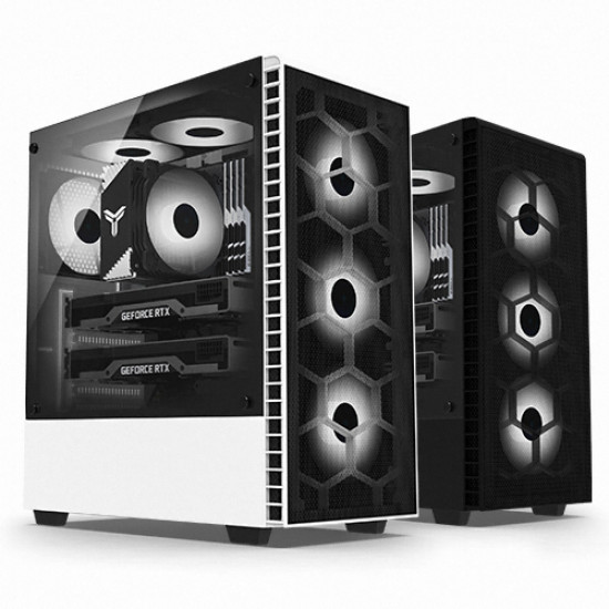 PC케이스(ATX) / 미들타워 / 파워미포함 / ATX / M-ATX / M-ITX / 쿨링팬:총4개 / LED팬:4개 / 측면 패널 타입:강화유리 / 후면:120mm LED x1 / 전면:120mm LED x3 / 너비(W):208mm / 깊이(D):408mm / 높이(H):452mm / 파워 장착 길이:210mm / 파워 위치:하단후면 / VGA 장착 길이:360mm / CPU쿨러 장착높이:160mm / LED 색상:화이트